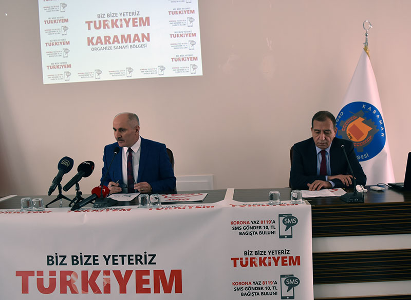 Karaman Valisi Fahri Meral, Karaman Organize Sanayi Yönetim Kurulu Başkanı Ali Kemal Boynukalın, Karaman Organize Sanayi Bölgesi Yönetim Kurulu üyeleri ve Basın mensuplarının katılımı ile Karaman Organize Sanayi Bölgesi Müdürlüğü toplantı salonunda gerçekleşen toplantıda “Biz Bize Yeteriz Türkiyem” Kampanyasına destek verildi.
