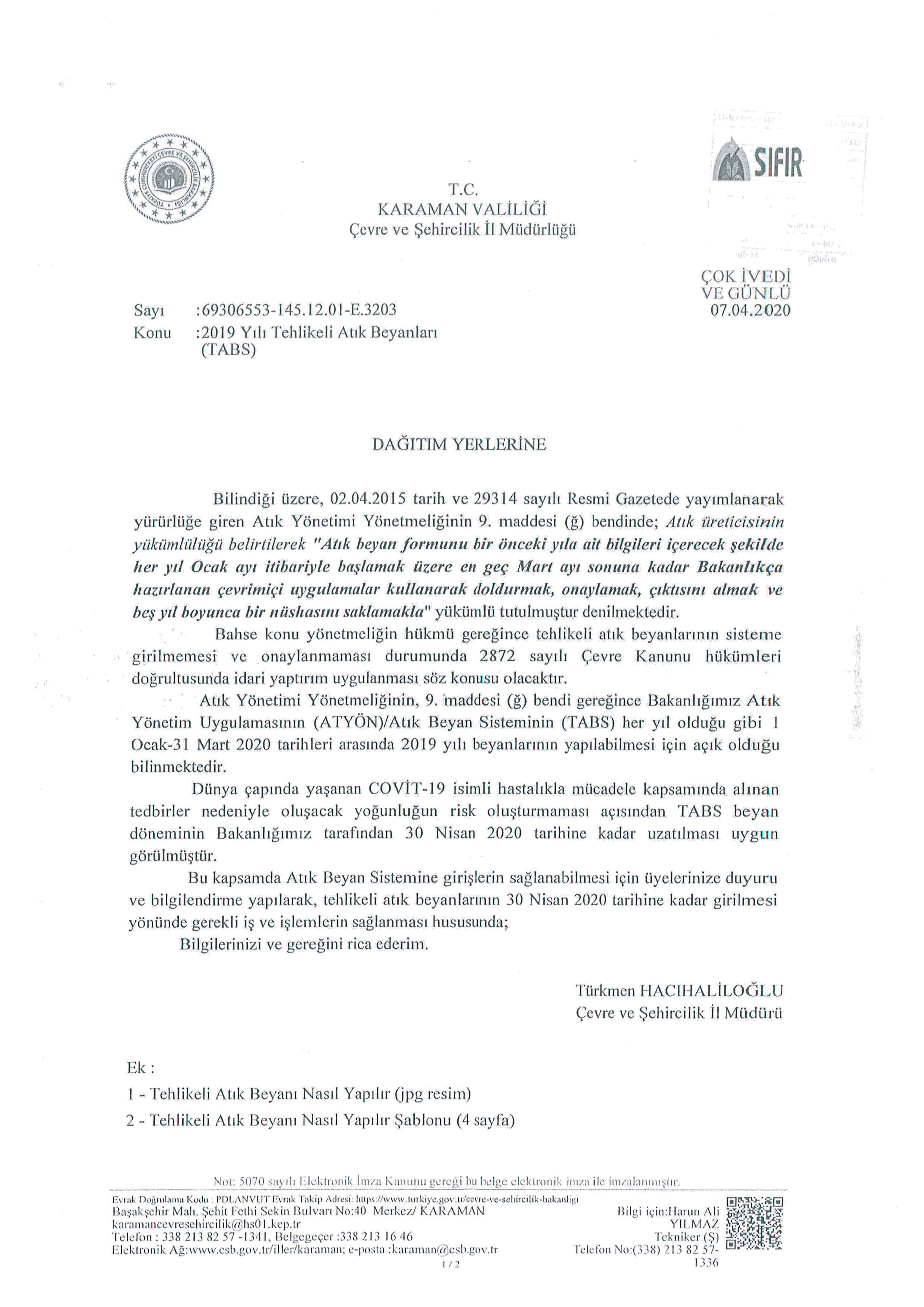 KARAMAN OSB YÖNETİM KURULUNDAN BAKAN ELVAN’A TEBRİK MESAJI