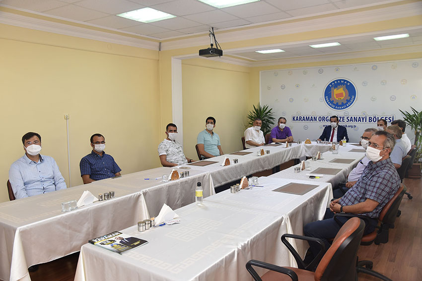 Karaman ve ülke gündemine dair gelişmelerin değerlendirildiği toplantıda Kovid-19 salgınının sanayi sektörüne etkileri, Karaman’daki vaka sayıları ve normalleşme sürecinin başlamasından itibaren geleceğe dönük planlamalar ele alındı.
