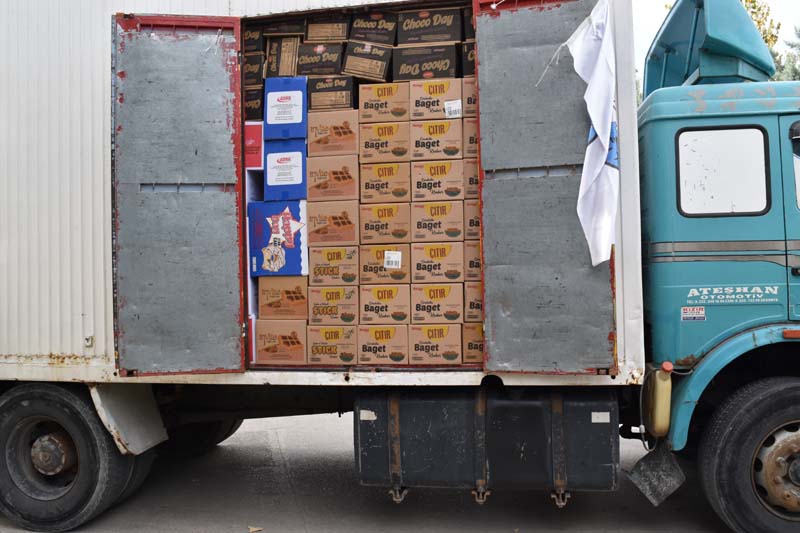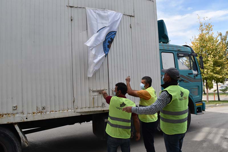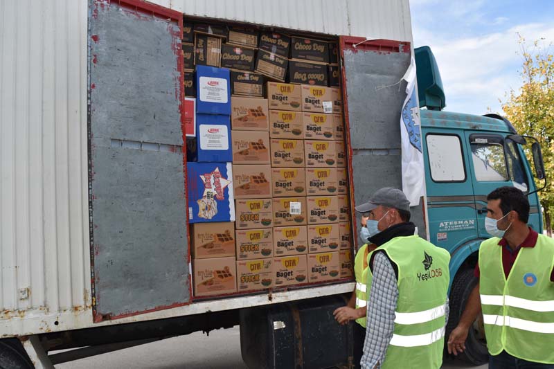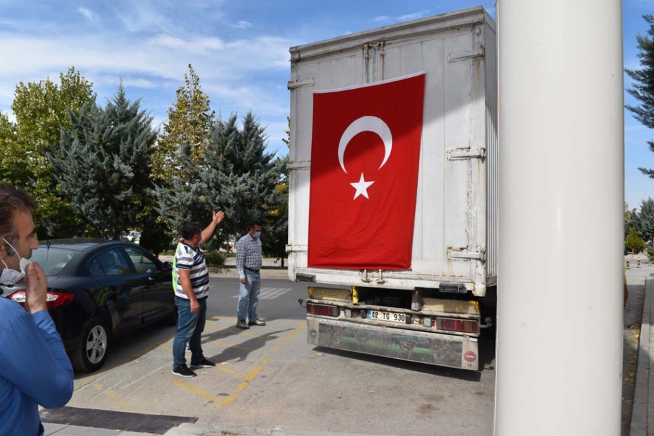 Karaman Devlet Hastanesi önünde bir kamyon ürünlerden oluşan gıda ürünleri sağlık çalışanlarına teslim edildi.