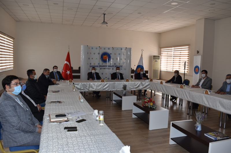 Karaman Valisi Mehmet Alparslan Işık, Belediye Başkanı Savaş Kalaycı ve Cumhuriyet Başsavcısı Behçet İşlek ile birlikte Karaman Organize Sanayi Bölgesi Yönetim Kurulu Başkanlığını ziyaret etti.