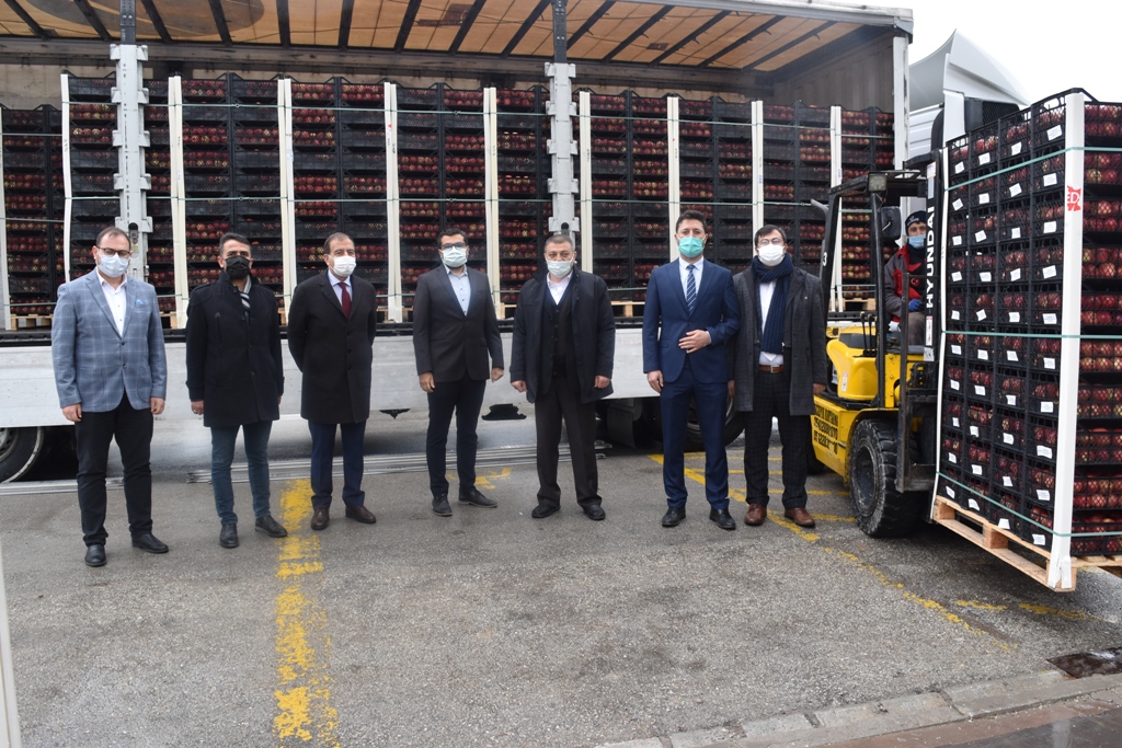 Karaman Devlet Hastanesi Başhekimlik Binası girişine gelen elma yüklü tırdan indirilen kırmızı elmalar sağlık çalışanlarının damaklarını tatlandırırken, bu anlamlı programa OSB Yönetim Kurulu Başkanı Ali Kemal Boynukalın, Yönetim Kurulu Üyeleri Esat Şen ve Ahmet Kapar’ın yanı sıra Hastane Başhekimi Ahmet Yılmaz ve OSB Müdürü Yasin Ünüvar katıldı.
